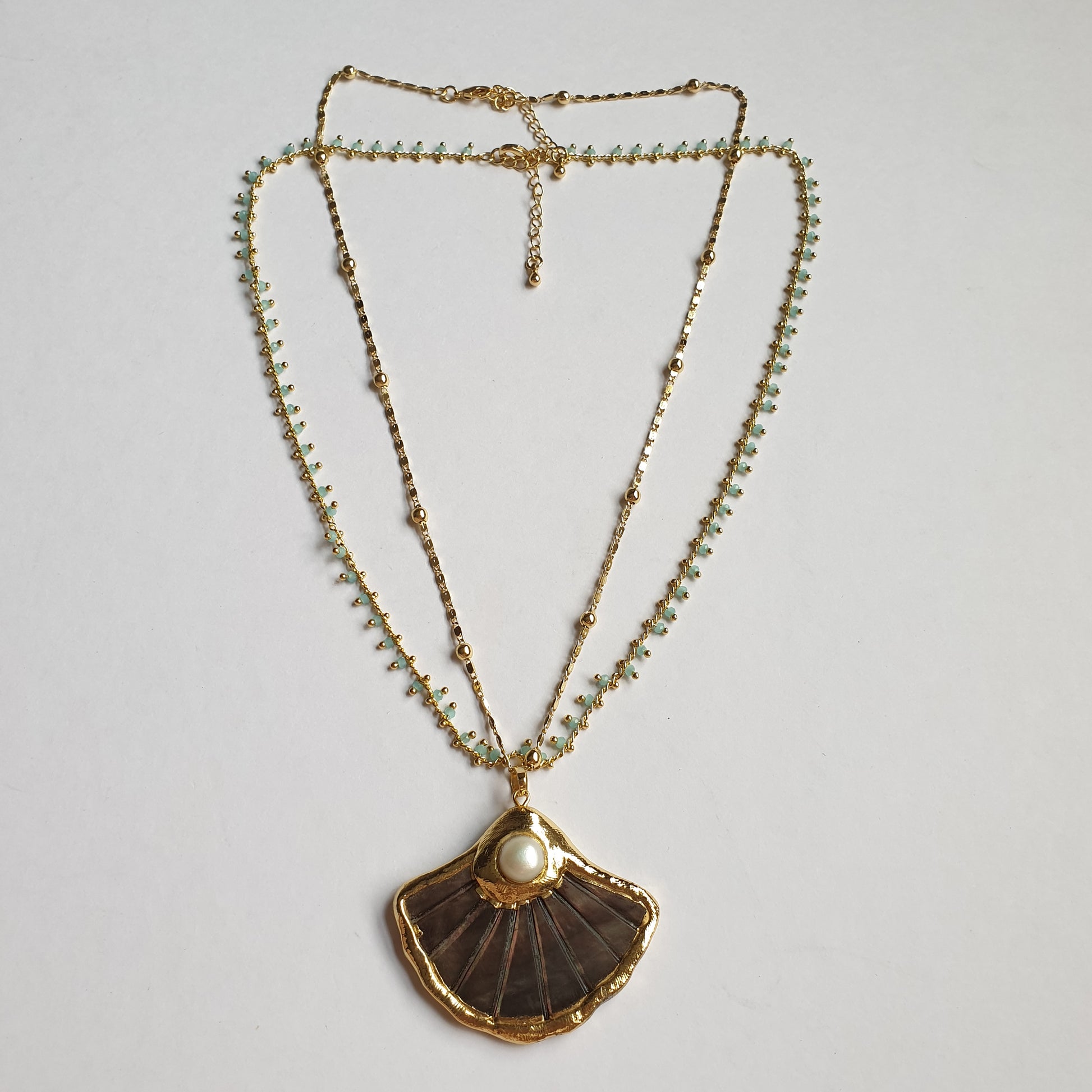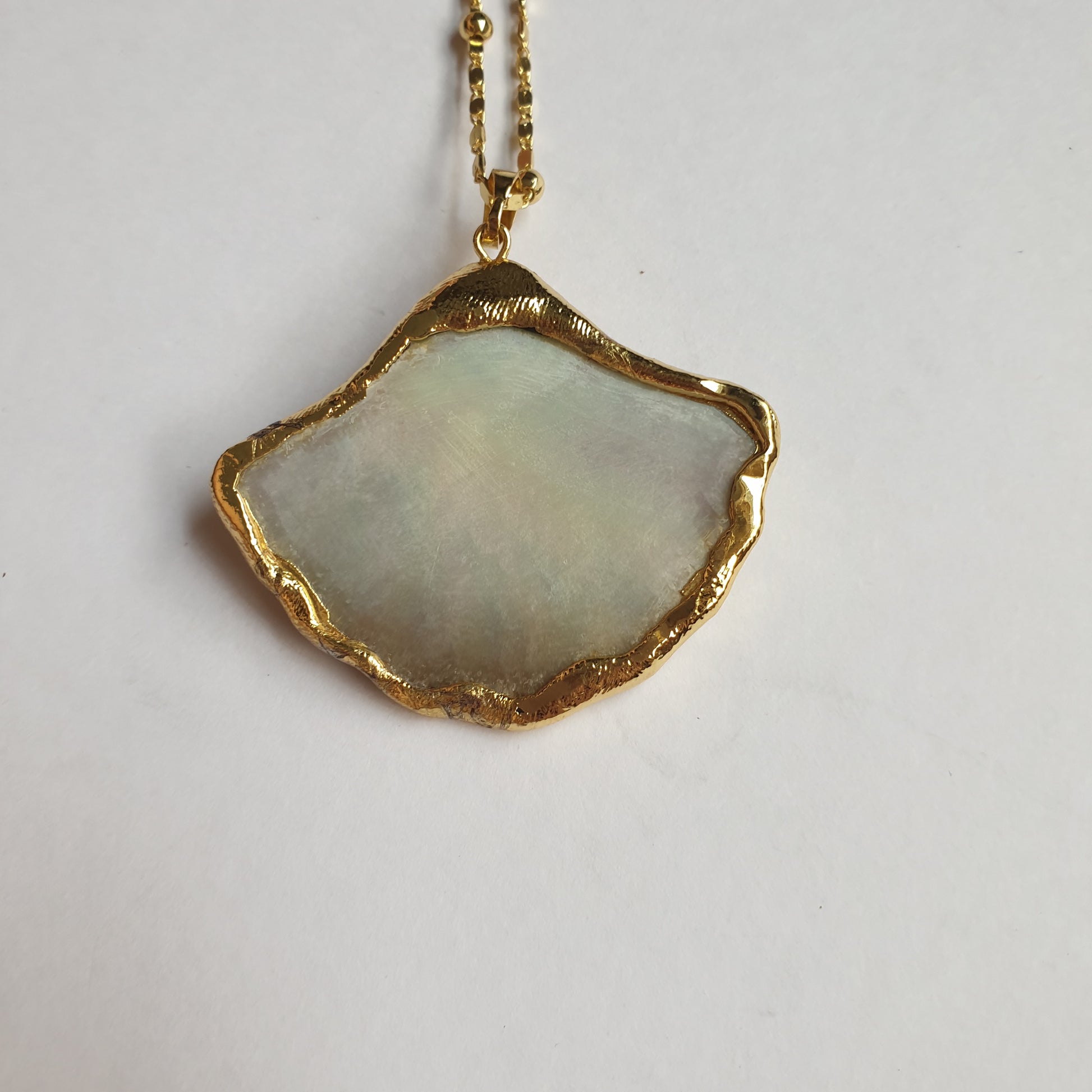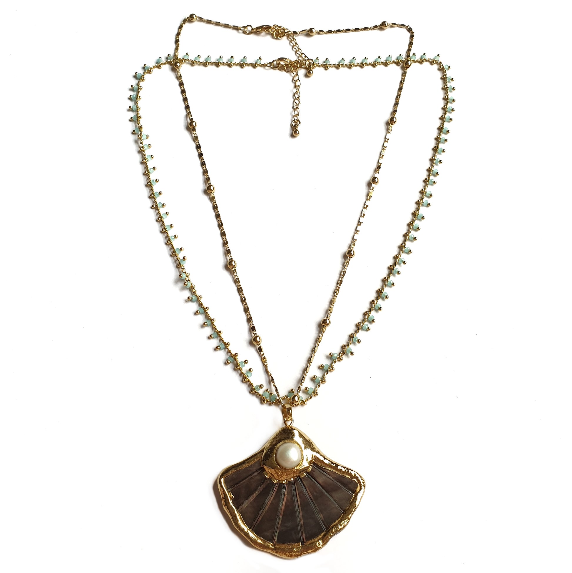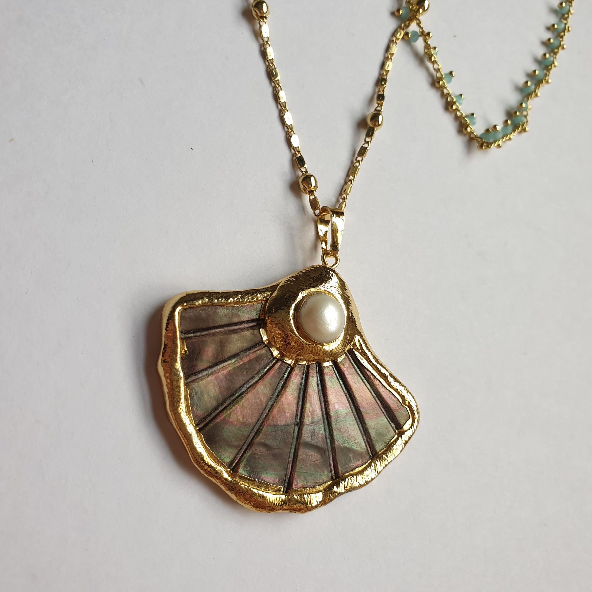 - 18k gold electroplated mother of pearl + pearl accent pendant; 18k gold electroplated chain