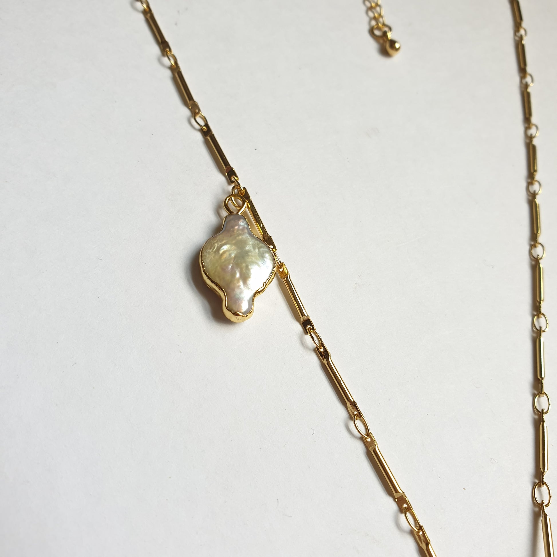 - Freshwater pearl in a darling irregular shape gilded in 18k gold