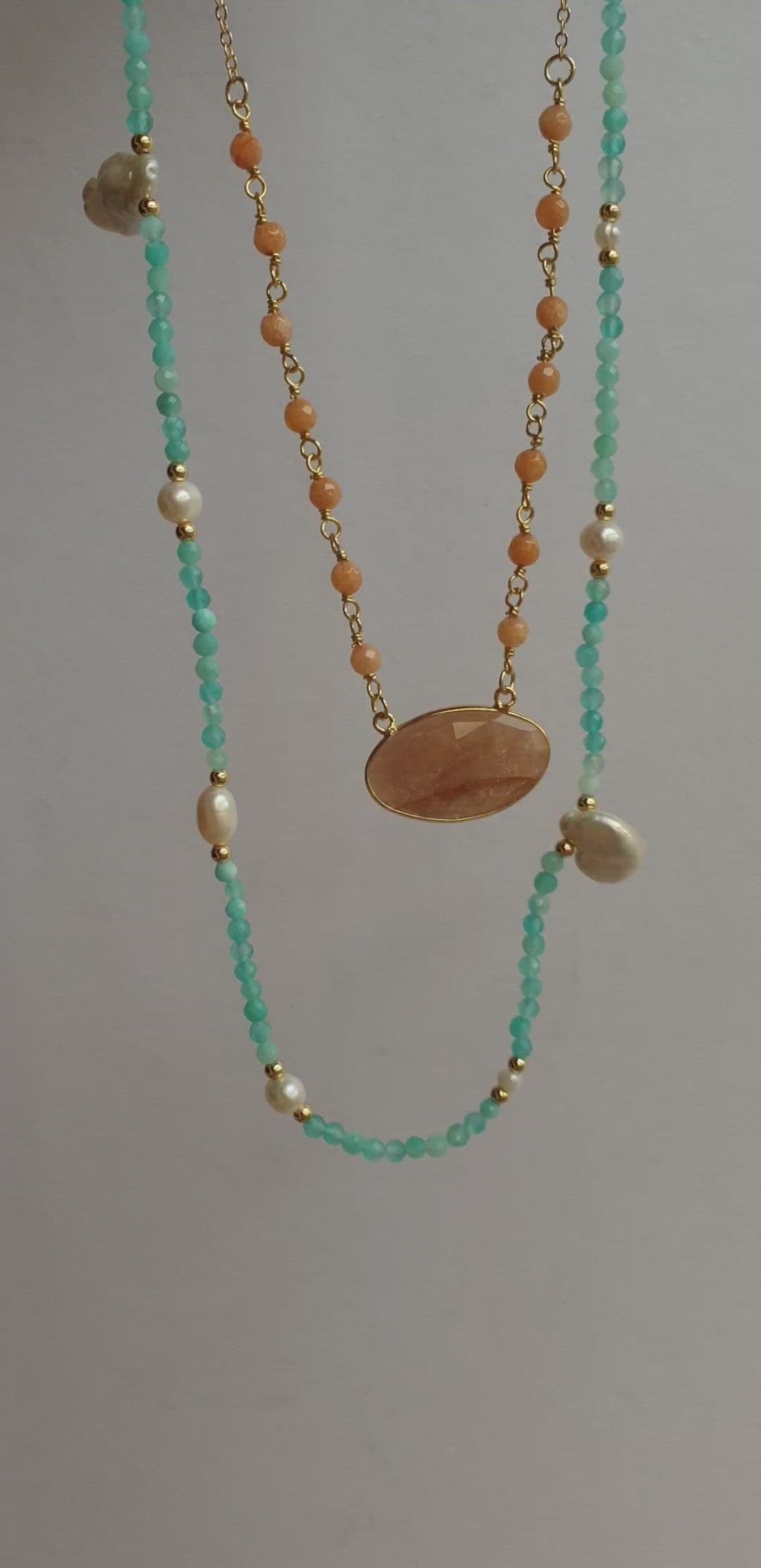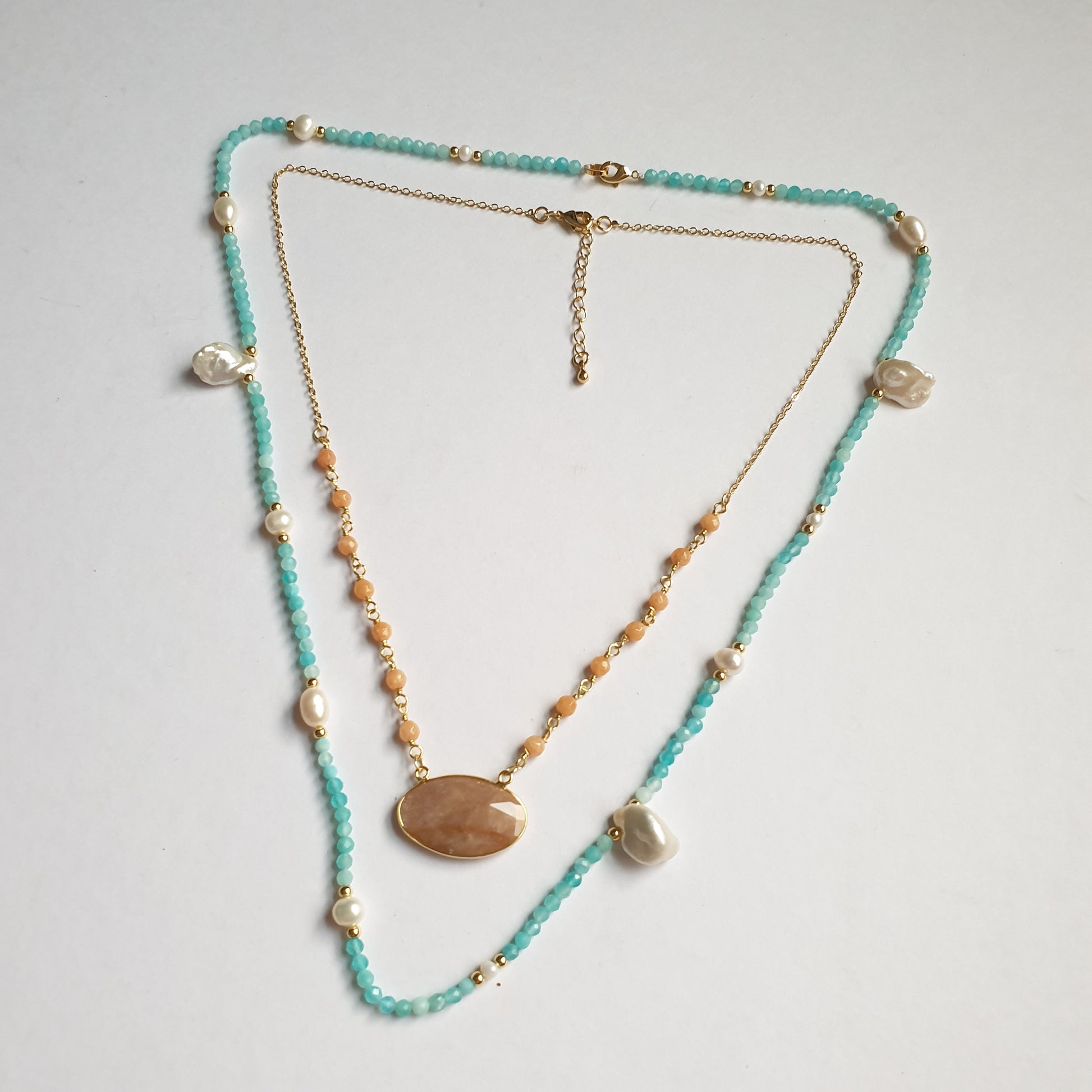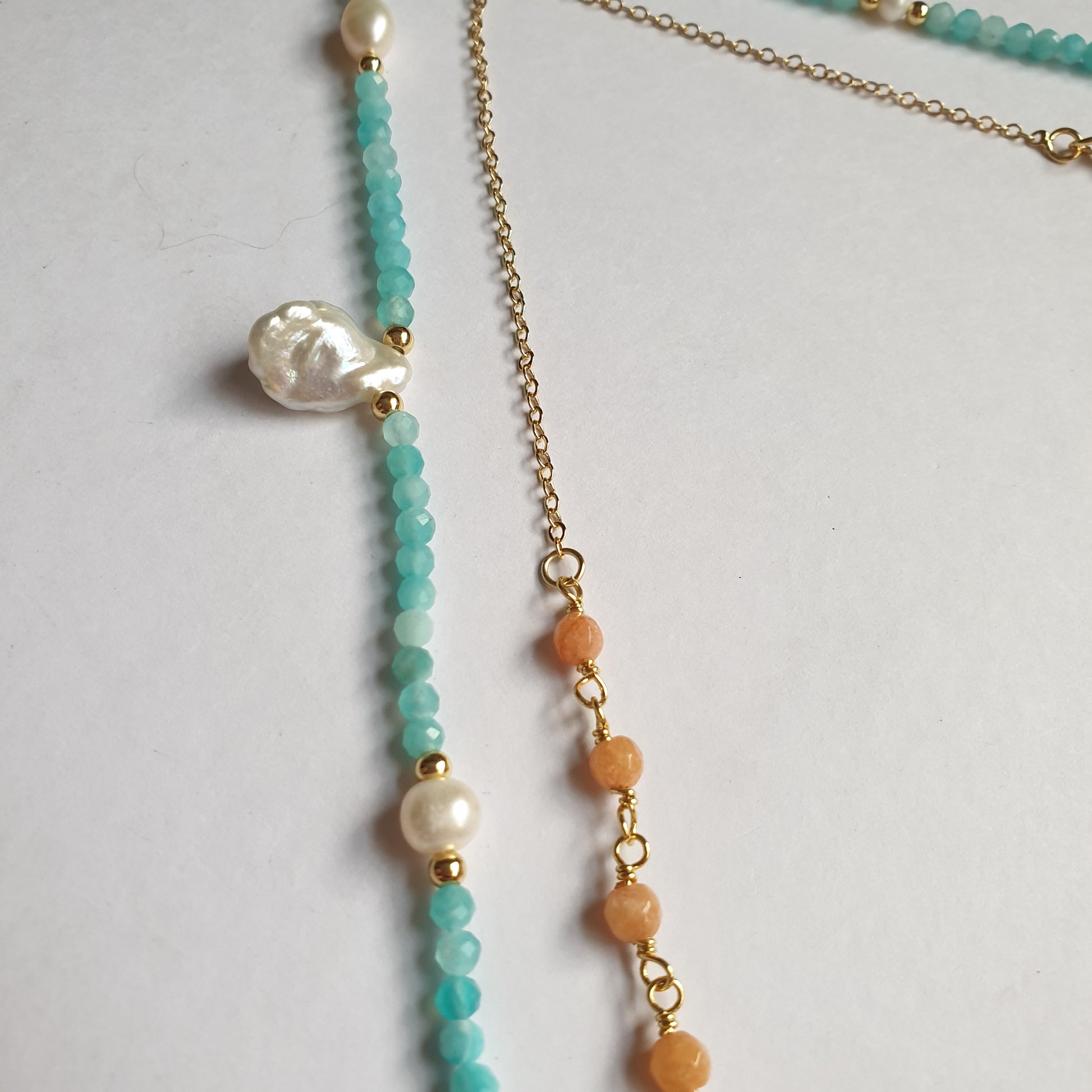 - 18k Gold electroplated beads, amazonite crystals, pearls