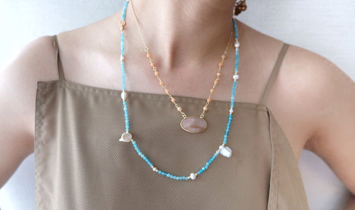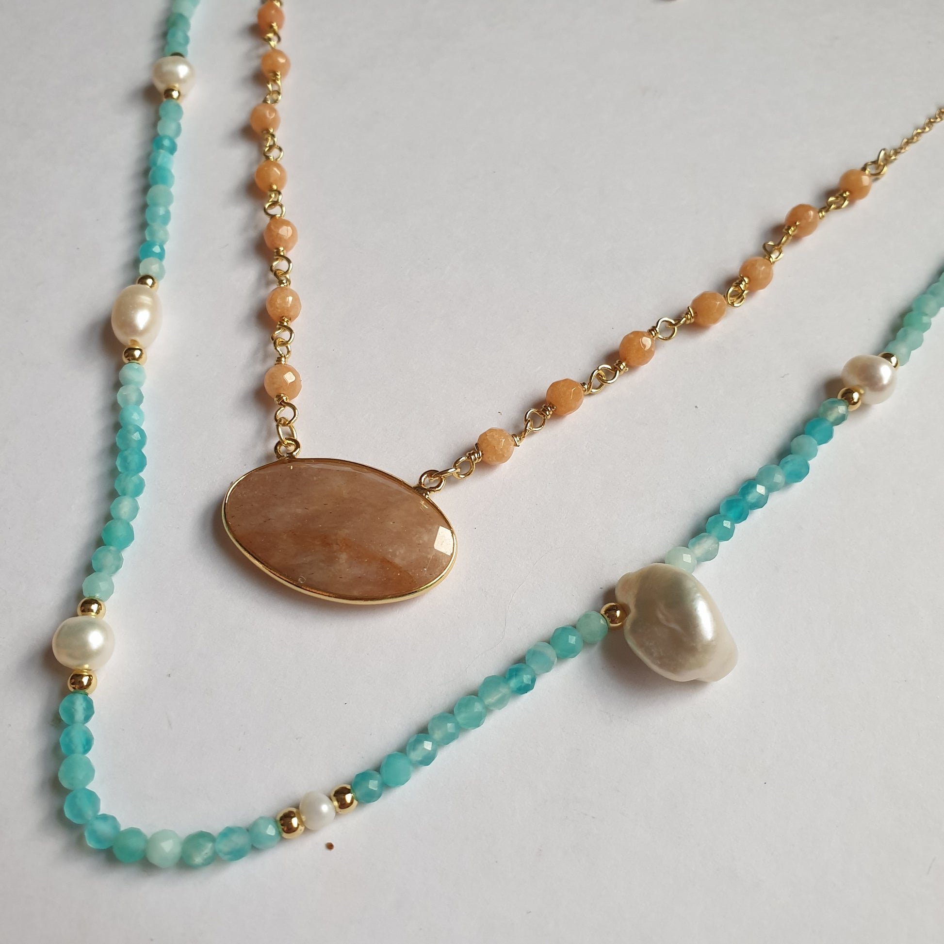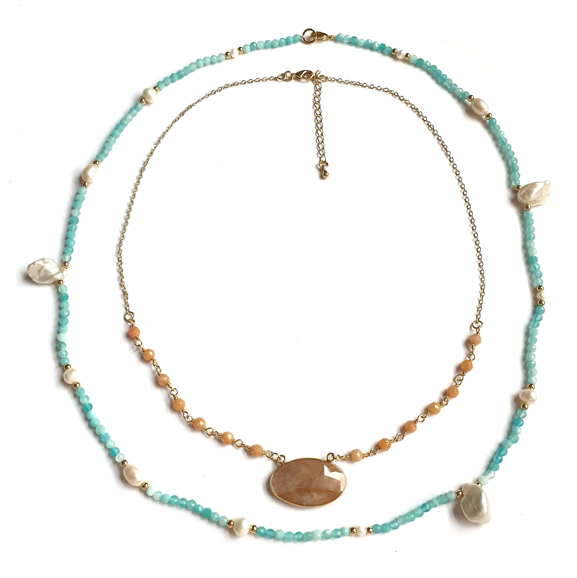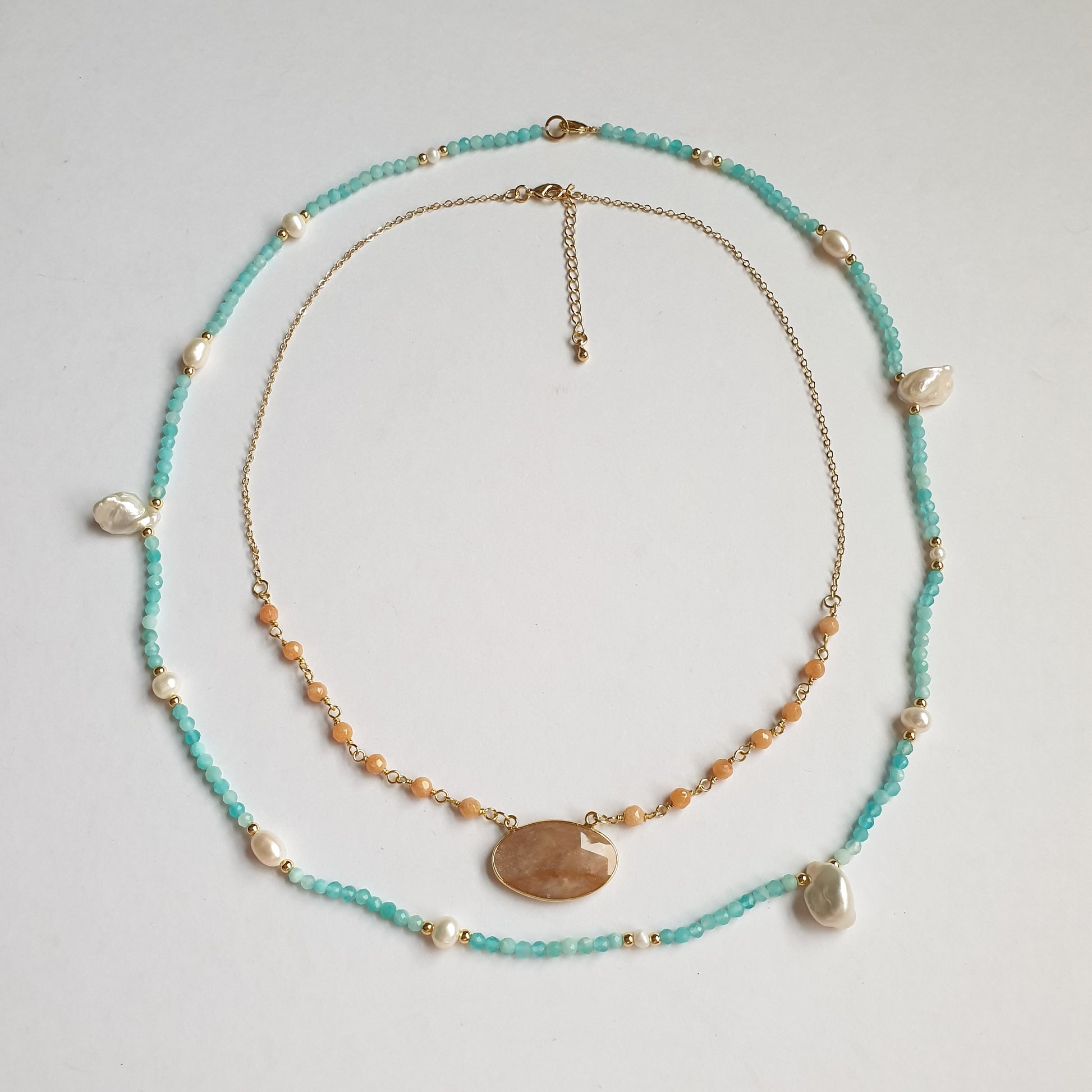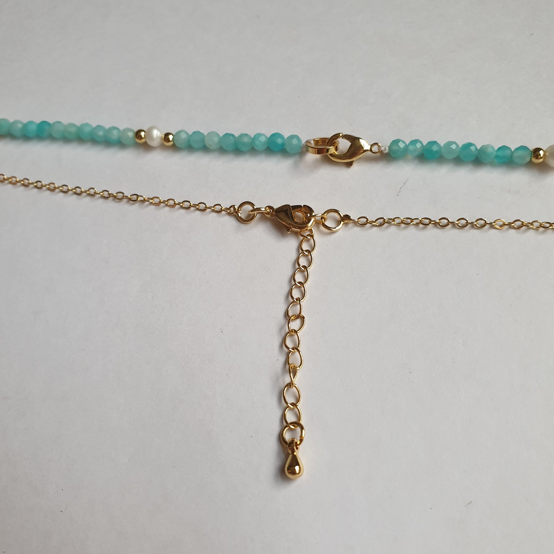 - Amazonite and Pearl Bead Necklace