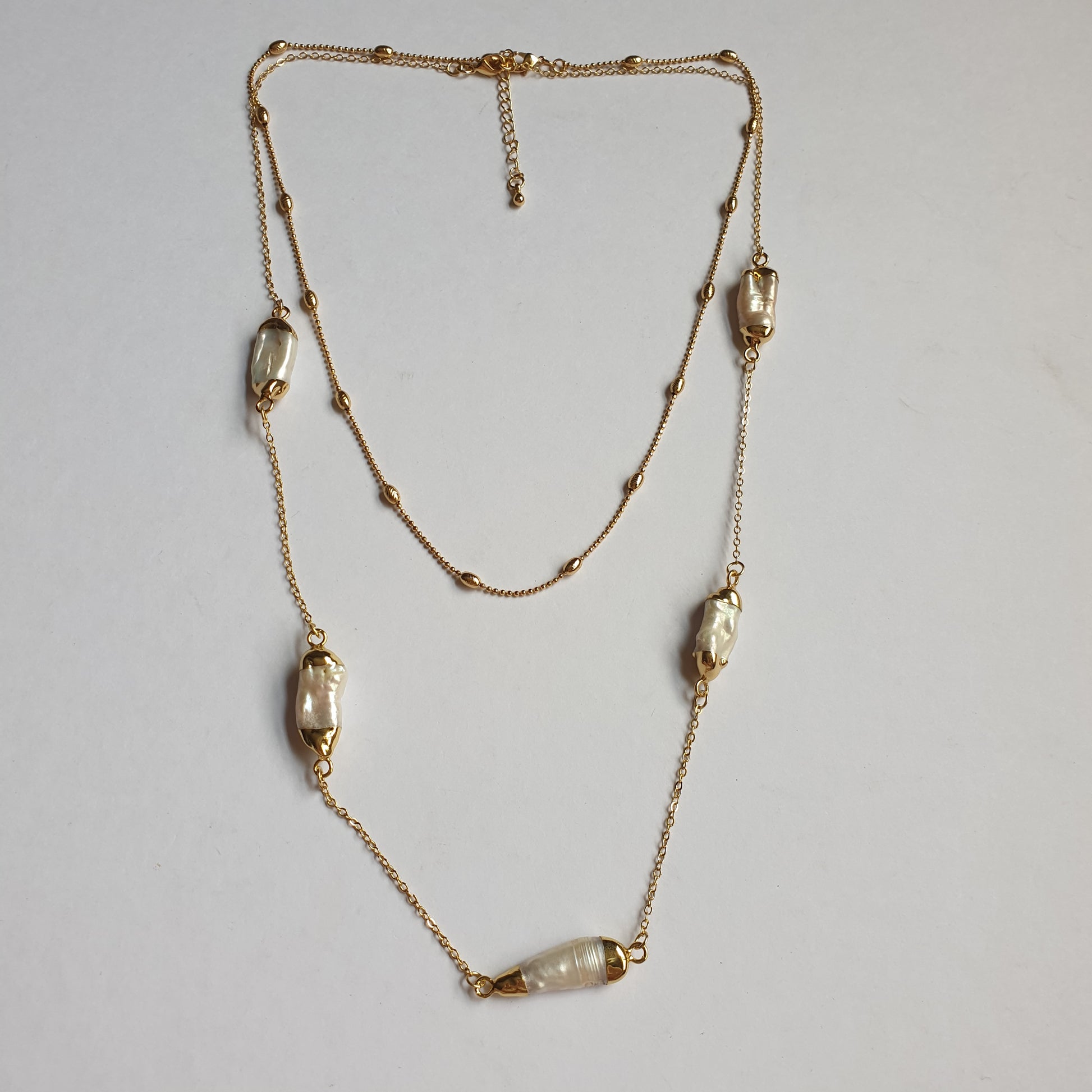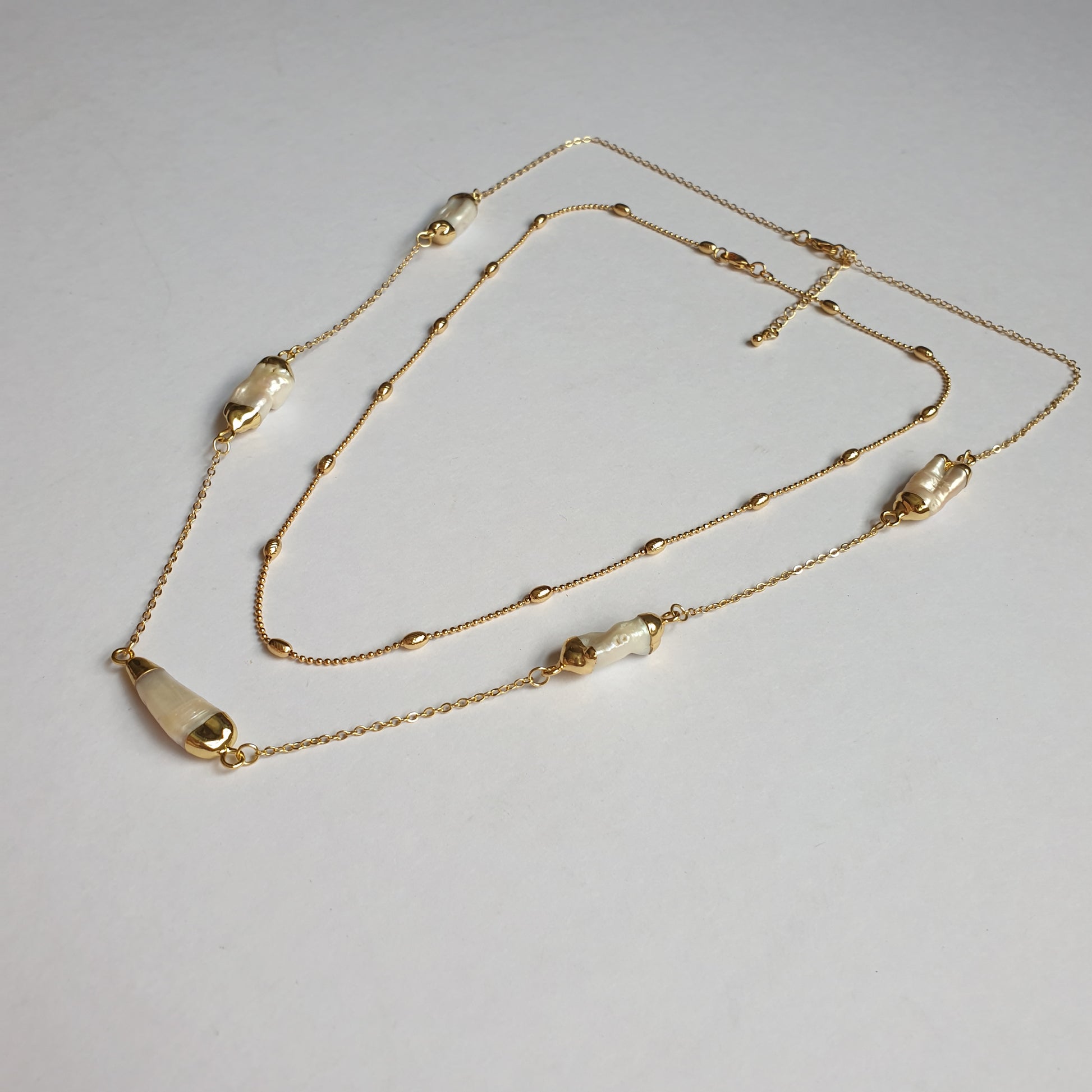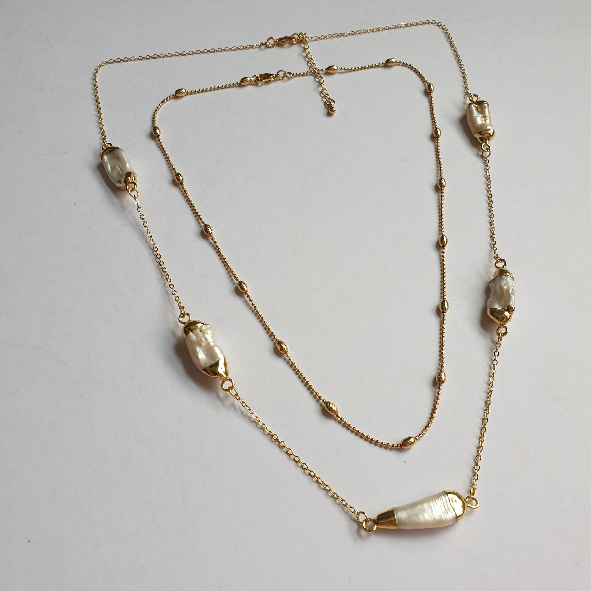 - 18k gold-dipped chain accented by five freshwater baroque pearls