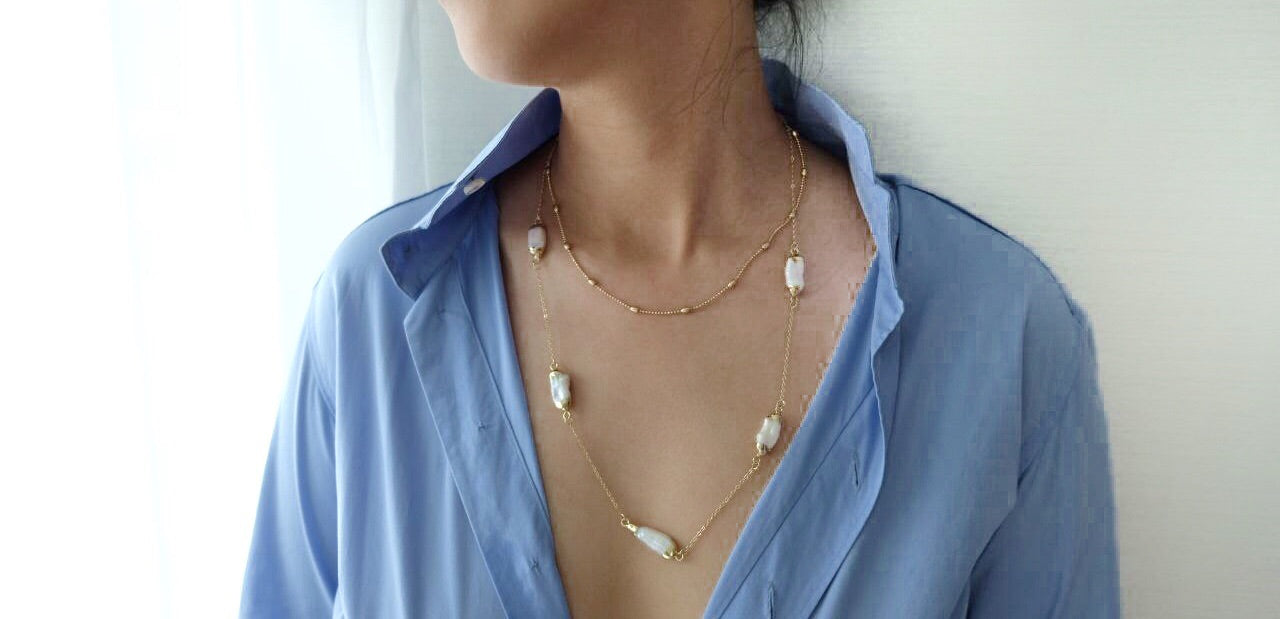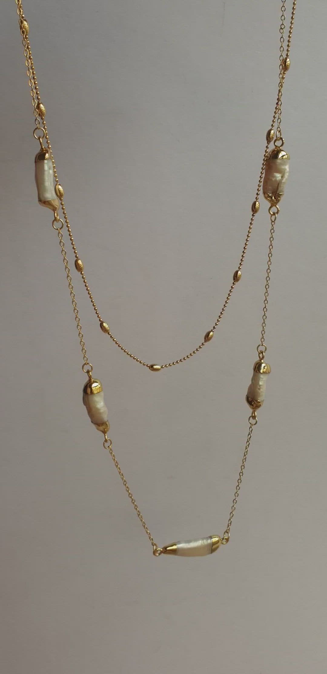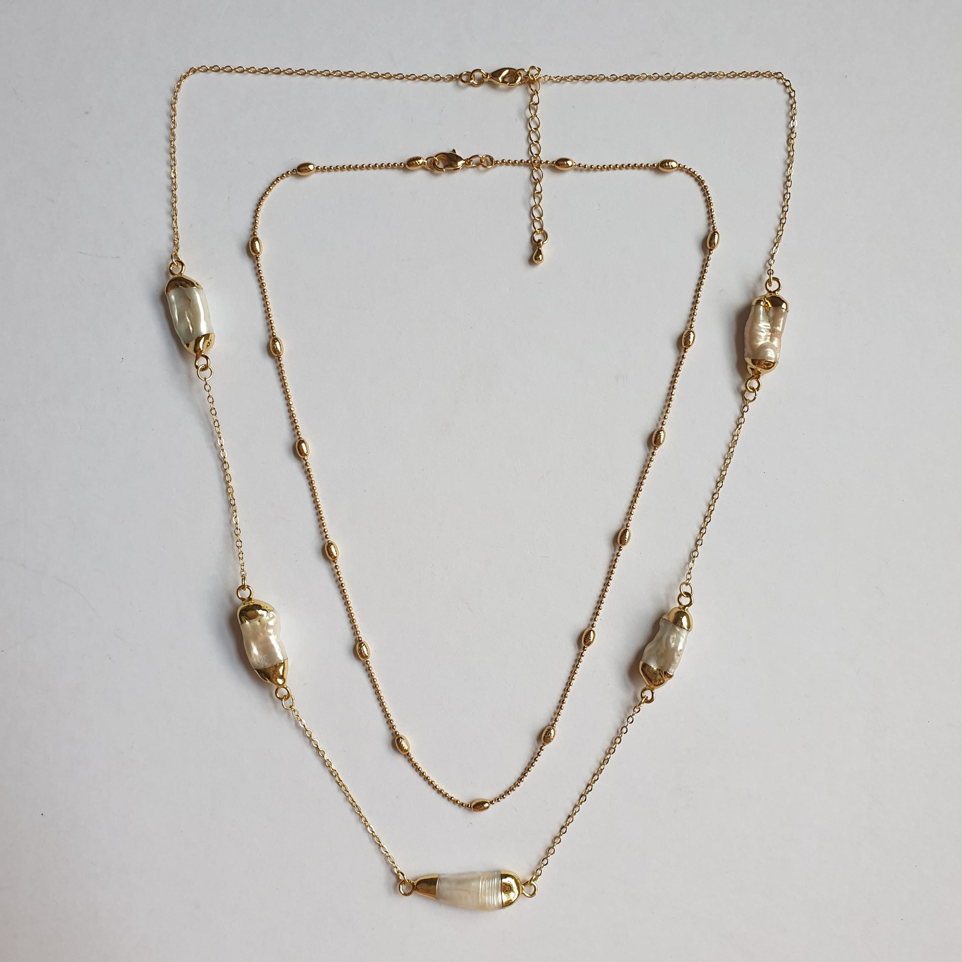 - 18k gold-dipped chain accented by five freshwater baroque pearls